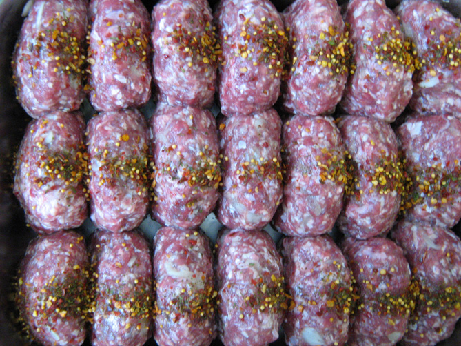 Цвет от красного до светло-розового, запах характерный доброкачественному мясу со специями.