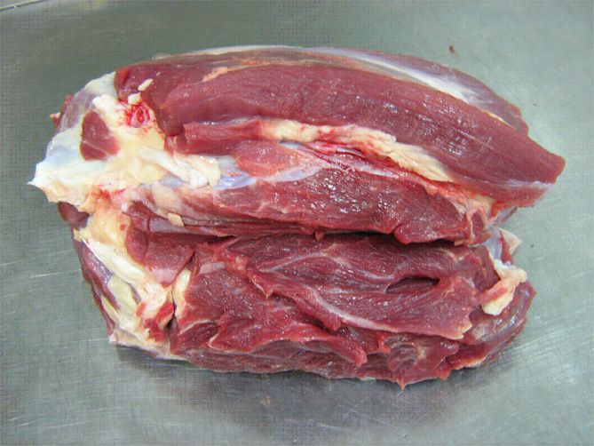 Зачищена от грубых сухожилий, межмышечная жировая и соединительная ткань не удаляется, поверхность ровная не заветренная, цвет и запах характерные свежему мясу, без глубоких порезов (не более 10 мм), слой подкожного жира не более 10 мм.
