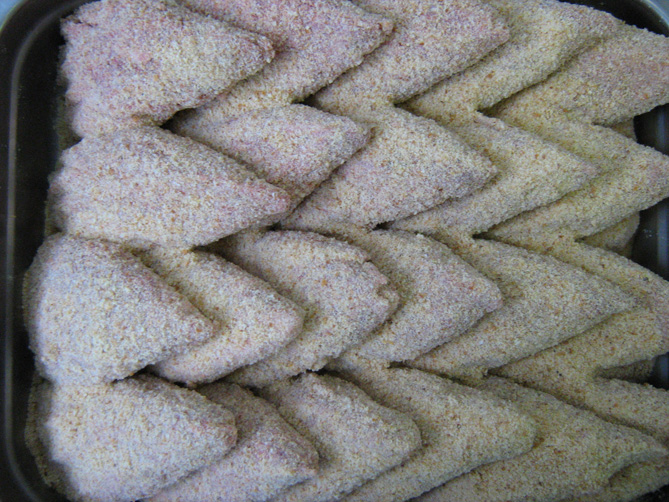 Рубленный полуфабрикат в панировочных сухарях формованный в виде котлет овальной формы заострённой с одной стороны, толщиной 20-25 мм и длинной 110-130 мм.