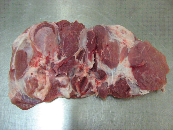 Крупнокусковой полуфабрикат, выделяется из переднего отруба свиной полутуши, представляет собой три соединённые между собой мышцы.