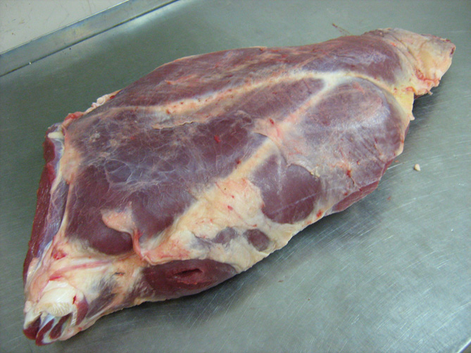 Зачищена от грубых сухожилий, межмышечная жировая и соединительная ткань не удаляется, поверхность ровная не заветренная, цвет и запах характерные свежему мясу, без глубоких порезов (не более 10 мм), слой подкожного жира не более 10 мм.
